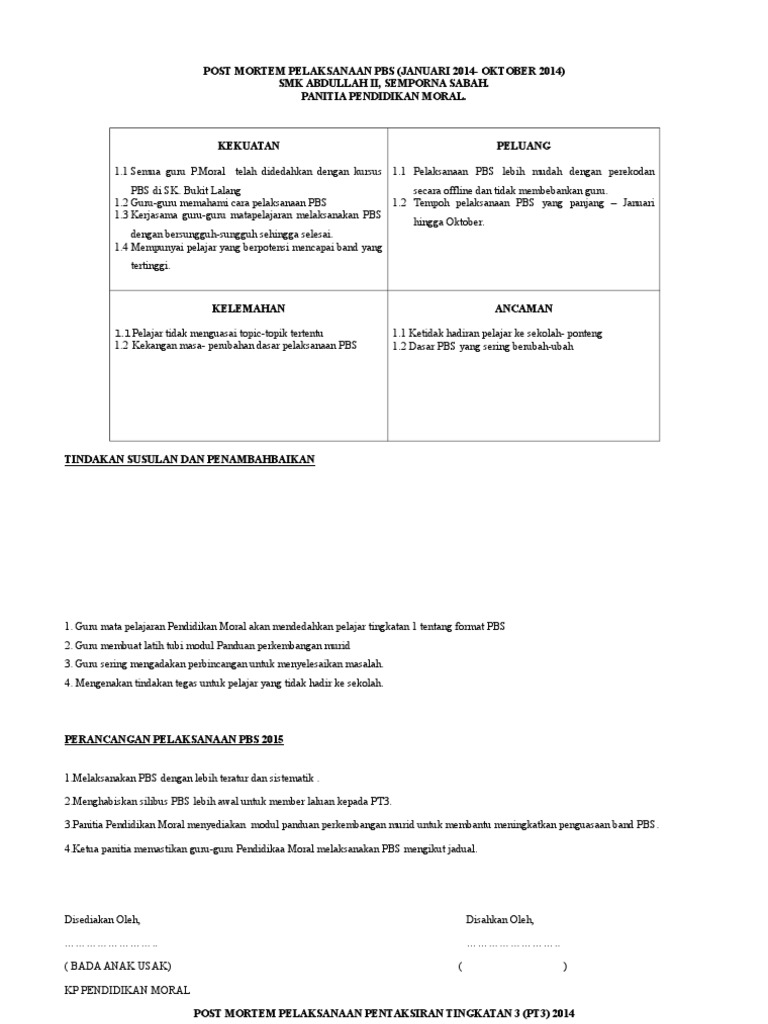 Post Mortem Pelaksanaan Pbs Dan Pt3 P Moral Pdf