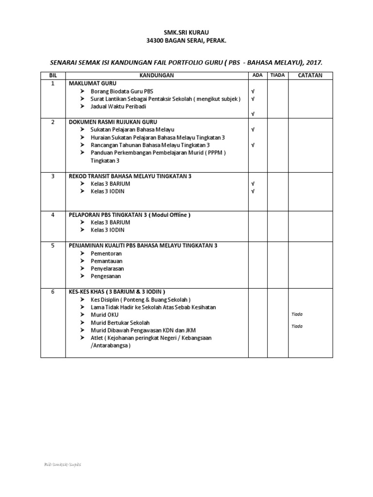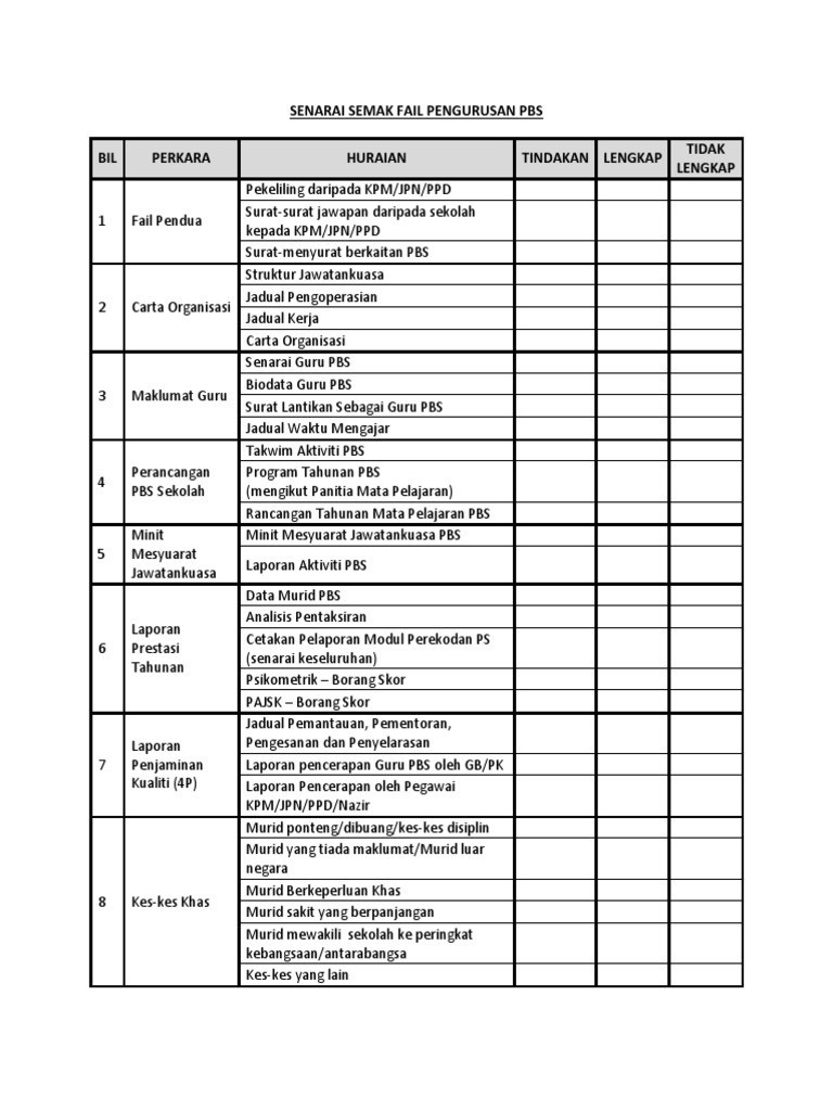 Senarai Semak Fail Pengurusan Pbs Pdf
